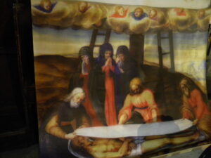 Secondo quanto ci ha riferito il prof. Baima Bollone nel suo intervento all’oratorio del Caravita: «La figura impressa sulla Sindone è quella di un corpo crocifisso irrigidito dal rigor mortis (…) il telo fu teso a ponte sul cadavere irrigidito nell’atteggiamento di lieve flessione del capo. Si nota la marcata rigidità dei muscoli mimici e del collo, comprovato dalla posizione del capo permanentemente flesso verso il torace. La rigidità cadaverica è mostrata anche dalle grandi masse muscolari del petto e delle cosce».